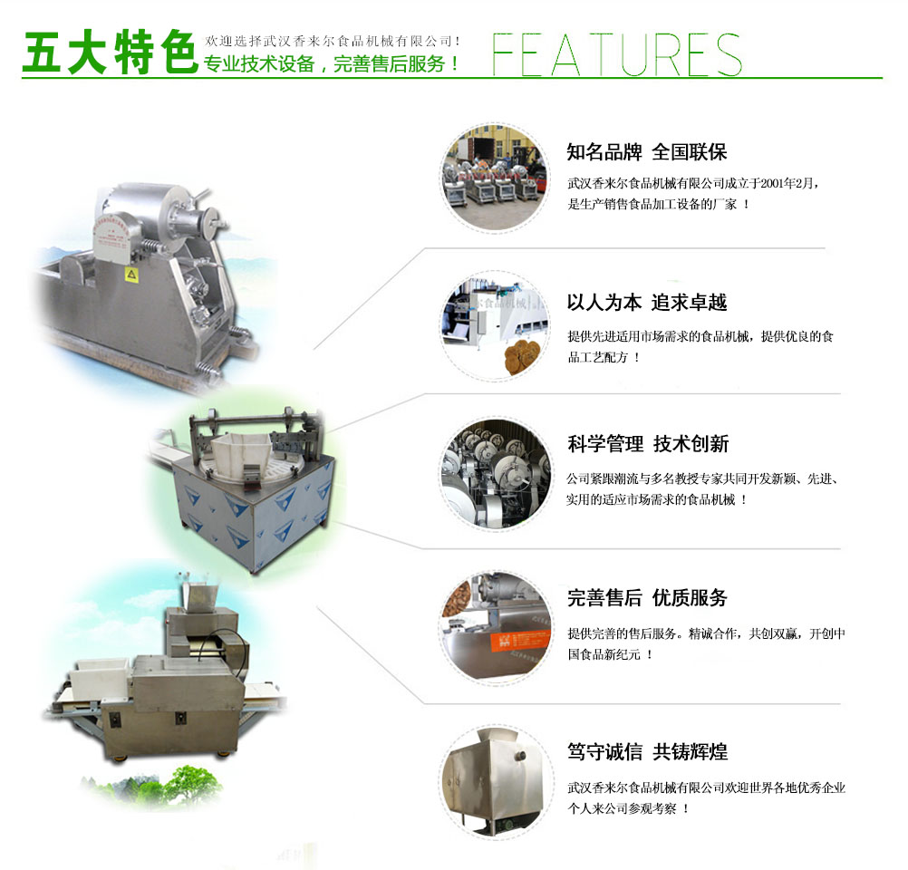 武漢香來爾食品機(jī)械有限公司成立于2001年2月,是生產(chǎn)銷售休閑食品加工設(shè)備的廠家。公司緊跟市場(chǎng)潮流與華工、華農(nóng)多名共同開發(fā)新穎、實(shí)用的適應(yīng)市場(chǎng)需求的食品機(jī)械,自有車、刨、鉆、銑、剪板、折彎等先l進(jìn)機(jī)床100多臺(tái) 套。7年誠(chéng)信通會(huì)員,產(chǎn)品出口拉美、非洲、東南亞、歐洲等很多國(guó)家和地區(qū),國(guó)內(nèi)很多食品企業(yè)都是我們的合作伙伴。目前公司專門設(shè)立一個(gè)的售后 服務(wù)班子,在公司逐步發(fā)展強(qiáng)大的過程中,一直堅(jiān)持售后服務(wù)的同步發(fā)展,精良的食品設(shè)...